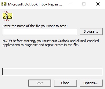 - Navigate to the C:\Program Files (x86)\Microsoft Office\root\Office16 folder and run SCANPST.EXE