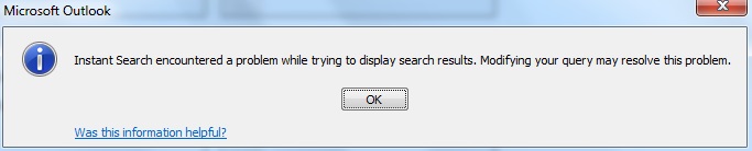 Outlook 2016 error – Instant search encountered a problem while trying to display results